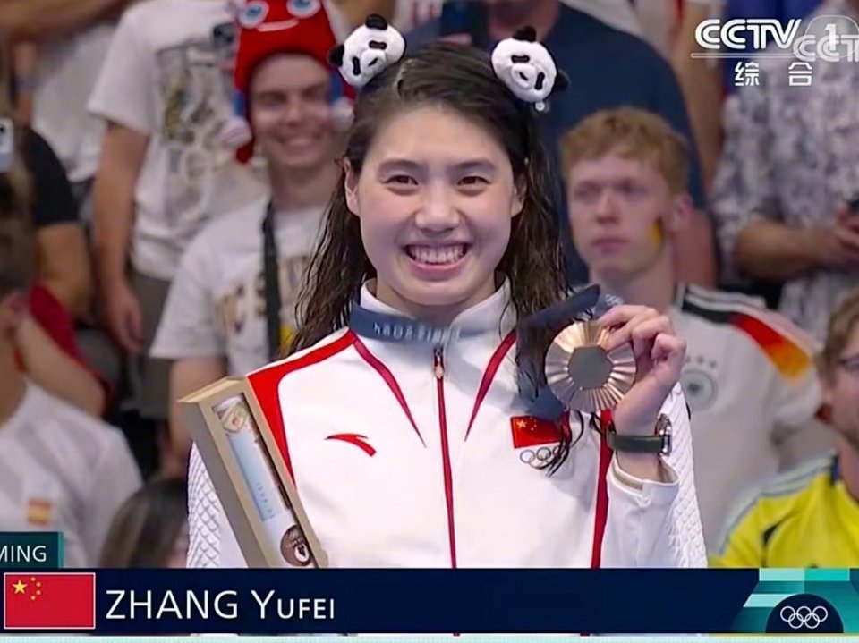 张雨霏确凿脾气太好了。东谈主漂亮,脾气也好,四肢文雅。熊猫发夹也可以。#奥运会##张雨霏50米开脱泳铜牌#